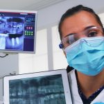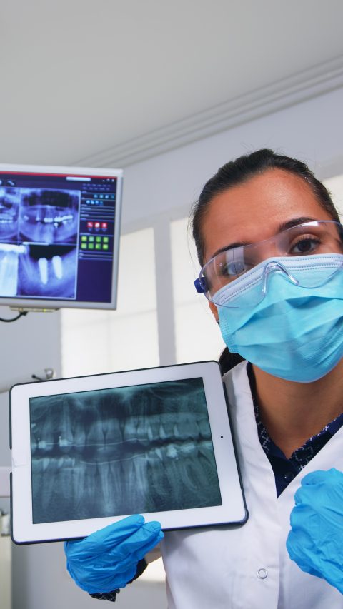 dentist-showing-tablet-teeth-x-ray-reviewing-it-with-patient-doctor-nurse-wor...